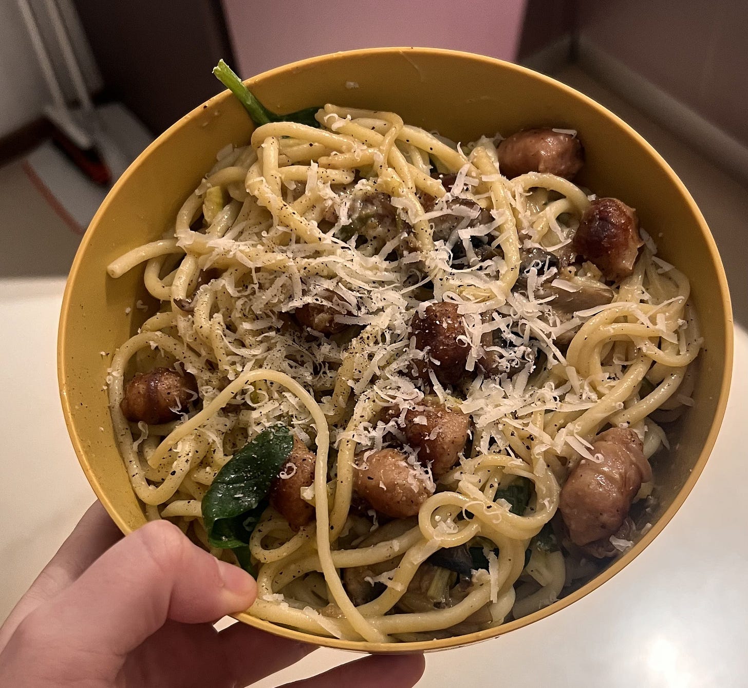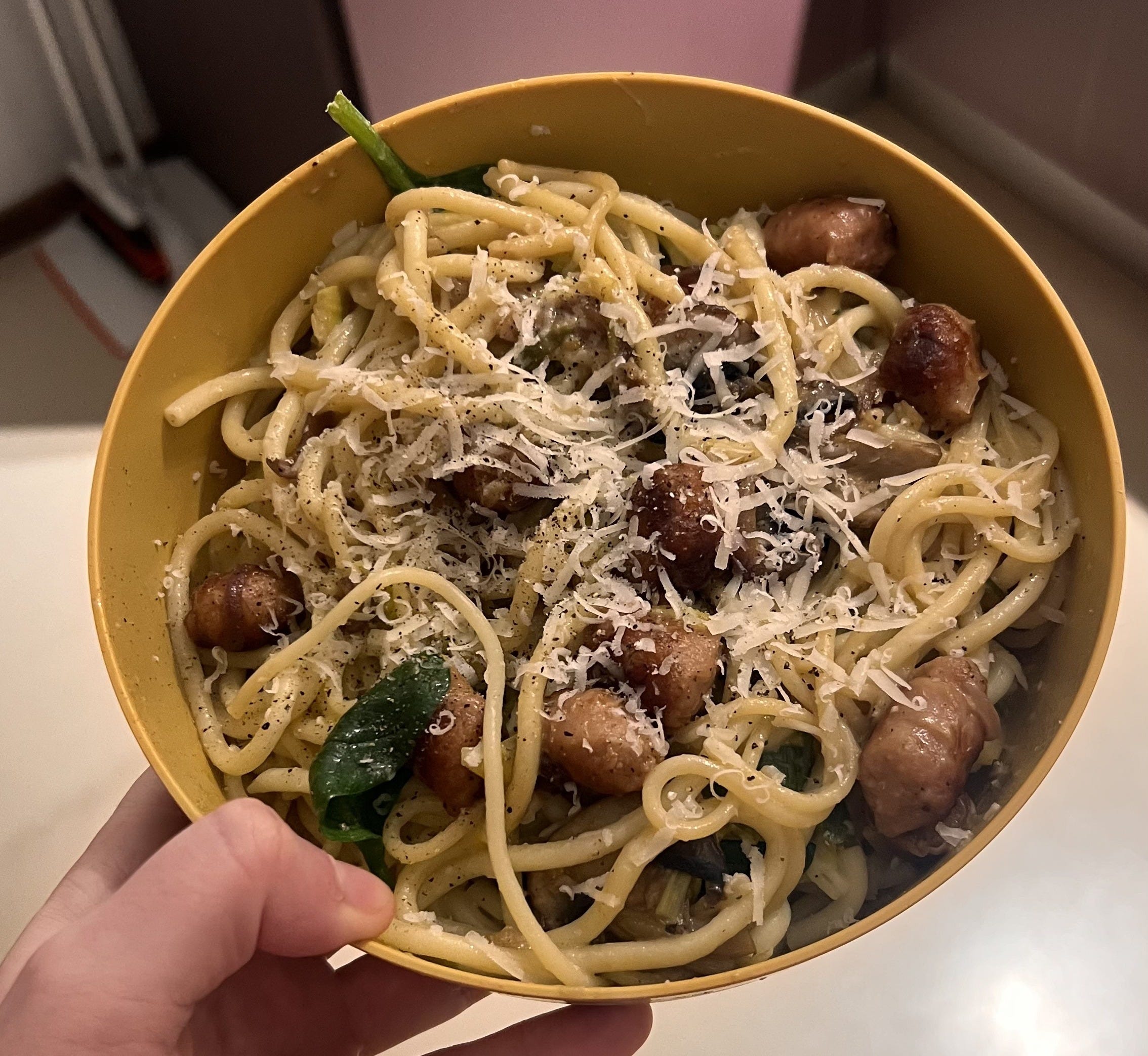 We’ve been taking turns cooking dinner every night which is actually very cute and domestic of us. I will be honest and say I’ve only cooked twice because I’m a bit of a frazzled cook. But both dishes went down a treat. My cooking style is essentially “how much chilli crisp is too much chilli crisp?” followed by “add butter and hope”. It’s working so far. Cathy and Sarah, however, are operating at a level that I can only dream of.